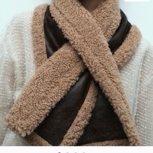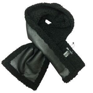 Double-faced scarf in leather effect and faux shearling fabric. Unisex