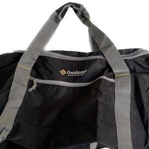 The Perfect Travel Companion, This bag is designed to accommodate your gear to and from your destination. Strategically designed side pockets store your shoes and sweaty unmentionables. Roomy main compartment accommodates a complete change of clothes for the weekend along with your toiletries. A zipped sleeve in the front stores travel documents, keys or a phone. Carry your belongings in style with this Black Duffel from Outdoor Products. The 36" bag features a U-shaped zip opening; hook-and-loop closure-wrapped handles on top; an easy-access, front pocket, an adjustable, removable shoulder strap and a slot side pocket.
