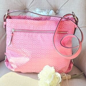 Coach Signature Jacquard Hobo Shoulder Bag Crossbody # 21041E ( Pink )