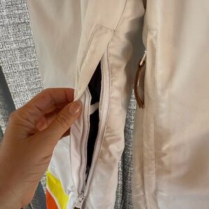 Women's Belted White Retro Rainbow Stripe Ski and Snow Suit XS - OOSC