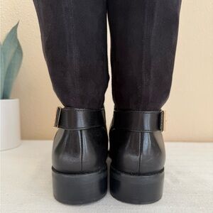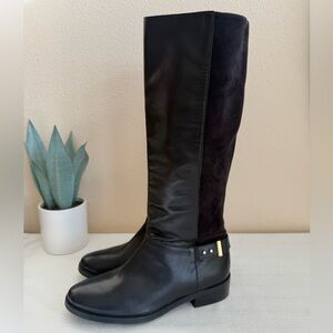 Step out in style with these elegant black leather knee-high boots. Perfect for any occasion, these boots offer both comfort and sophistication.