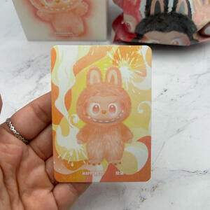 Labubu Happiness Big Into Energy plush keychain from POP MART’s The Monsters series. Comes with its original box and bag. The figure is in good condition but it does have some wear from being on my black purse so please see pics. Please note: the box has tearing (see photos). Perfect for collectors, display shelves, or Labubu fans.