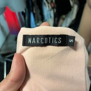 Keywords: Narcotics dress, pink dress, strapless dress, one shoulder dress, bow detail, wrap dress, midi dress, asymmetrical neckline, cocktail dress, party dress, evening dress, sophisticated, elegant