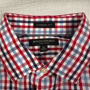 Banana Republic Camden Non Iron Red White Blue Gingham Plaid Button Down Shirt