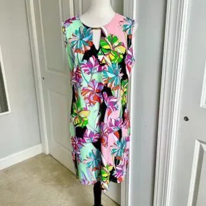 Jude Connally Pink Green Black Floral Geometric Sleeveless Dress Size XL