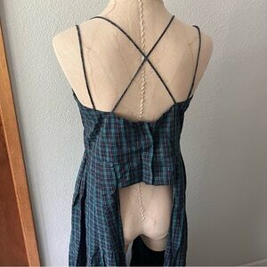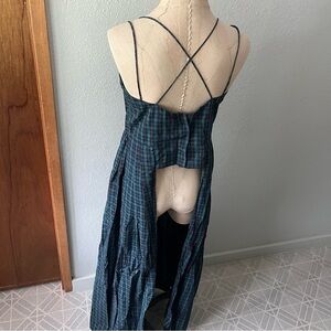 PETERSYN sz M Blue Plaid Woven Tank Top Long Sides High Low