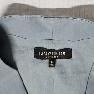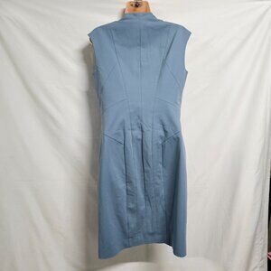 Lafayette 148 New York Sleeveless Full Zip Women Sheath Dress Size 8 Blue Cotton