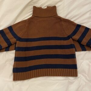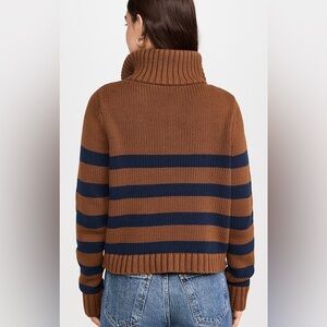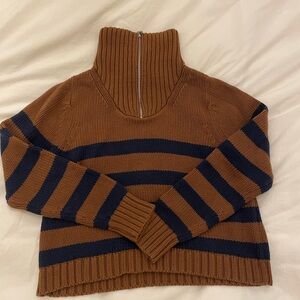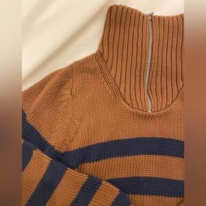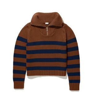 KULE The Matey | Brown and Navy Striped Quarter-Zip Sweater