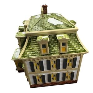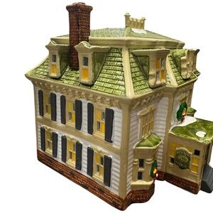 Charming ceramic piece from the Snow Village collection. Features a cozy inn with built-in lighting. Ideal for festive displays.
