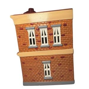Add a touch of nostalgia to your holiday decor with this charming village house. Featuring warm brown tones and a festive green wreath, it's perfect for creating a cozy holiday scene.