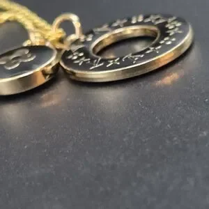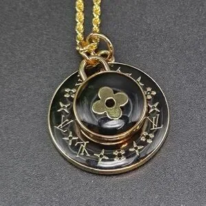 Beautiful Louis Vuitton necklace featuring two matching black enamel charms on a premium 20-inch rope chain, gold filled over solid S925 sterling silver (stamped).