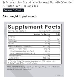 Omega-3 Krill Oil with double strength. Contains 1000mg krill oil and 240mg omega-3. Gluten-free and non-GMO.