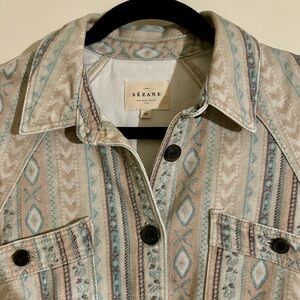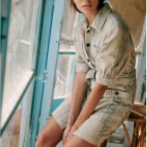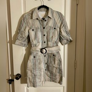 NWOT Sézane ✨Archives✨ Denim Collared Belted Button Up Mini Dress Beige/Green