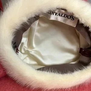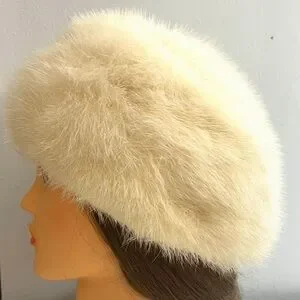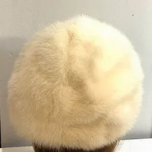 Elegant cream mink fur hat with side clips attached . Perfect for winter fashion.