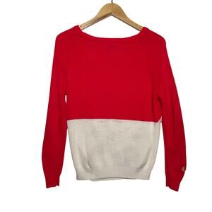 VINTAGE Cyn Les 1970s Womrn’s Colorblocked Ski Embroidered Long Sleeve Sweater Red and White