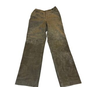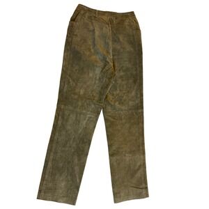 Olive Green Khaki Suede Leather Straight Lined Leg Pants Women's Size 12