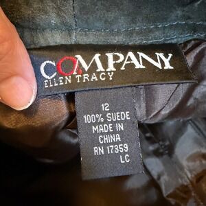 Company Ellen Tracy suede pants in a versatile olive green hue. These trousers offer a classic straight-leg silhouette with a comfortable mid-rise fit and traditional pocket detailing. The supple suede lends a touch of luxurious texture to any outfit. Perfect for a sophisticated dinner outing or a stylish weekend brunch.
