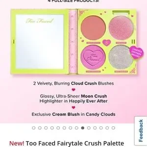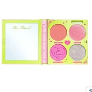 Explore the Too Faced blush palette. Features vibrant pink and shimmering white. Perfect for a radiant look.