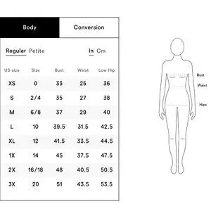 - The model is wearing a size XS and is 5'10", 23" waist, 34" hips, 32" bust.