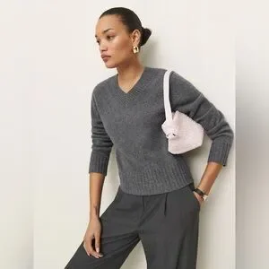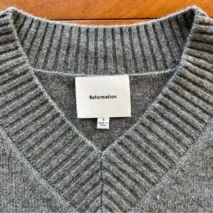 Reformation Dulce 100% Cashmere V-neck Sweater in Thunder Size S