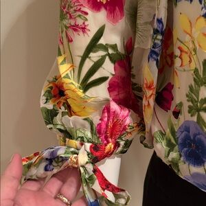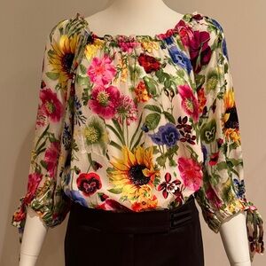 NWOT ALICE + OLIVIA ALTA FLORAL PRINT SILK BLEND BLOUSE ON/OFF SHOULDER SZ LARGE