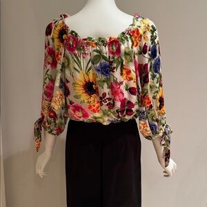 GORGEOUS BLOUSE CAN BE WORN ON OR OFF THE SHOULDER WITH BOW SLEEVES