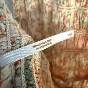 Charming floral sundress with smocked bodice. Features orange and cream hues.