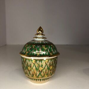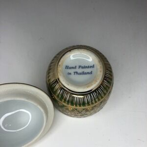Vintage Thai Benjarong Porcelain Bowl w/Lid Hand Painted Enamel Gold