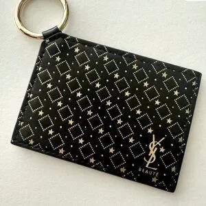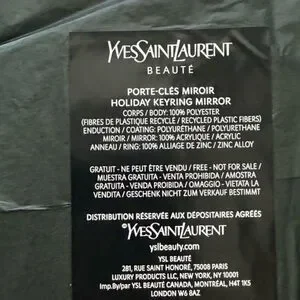 YSL mirror novelty gift with the purchased compact mirror with a black frame and gold keyring. Ideal for quick touch-ups.