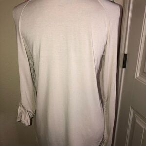 Super cute cream colored top with long sleeve that you can also make into 3/4 length sleeves with a button pull back.