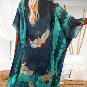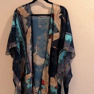Kimono open front, great design, flying cranes,one size an lightweight.NWOT.