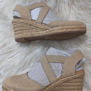 NIB Easy Spirit Mesa Espadrille Wedge - Size 7 Tan / Gold
