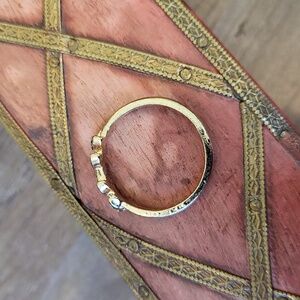 Gold Tone Olive Leaf Rhinestone Detail Ring, Size 11.5