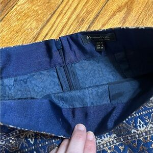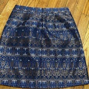 Massimo Dutti Mini Skirt Navy Blue Bronze Gold Metallic Jacquard Size 4