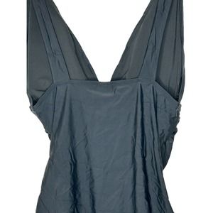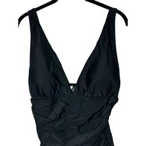 NWT J Crew Factory Womens One Piece Swimsuit Large V Neck Ruched Padded Black