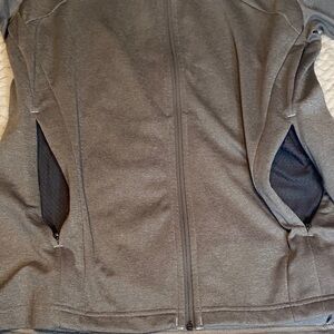 Stylish utility jacket with a sleek design. Features a full zip and stand-up collar. Perfect for versatile wear.