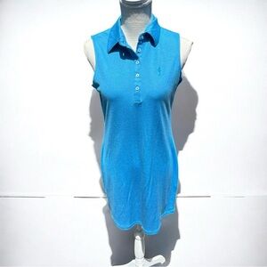 🌻Tori Richard Honolulu Blue Silk Blend Polo Tank Sleeveless Resort wear Dress S