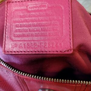 Stylish pink shoulder bag by Coach. Features perforated design. Silver hardware accents some marks noted due to wear see photos 12x4x9 S 10"