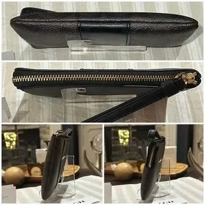 COACH Signature PVC Leather Corner Zip Wristlet w/Stripe in Walnut Brown & Black. BNWT and Uncarried! Gorgeous and Giftable!