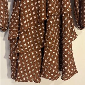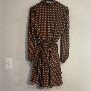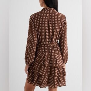 Printed Collared Long Sleeve Tie Waist Tiered Mini Dress