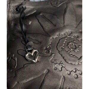 Vintage Brighton Bronze Color Leather Floral Embossed Tassel, Tag Shoulder Bag