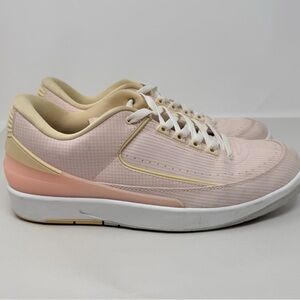 The product is a Size 12 Nike Air Jordan 2 Retro Low in a stylish pink colorway. This sneaker features a low top shaft style and belongs to the Air Jordan product line, with a retro theme indicating a nod to classic Jordan designs. With the iconic Nike brand and Air Jordan model, this athletic shoe is sure to be a coveted addition to any sneaker collection for men looking for both style and performance.