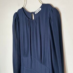 Reformation navy blue long sleeve midi dress a sophisticated and elegant choice. This dress features a flattering keyhole neckline, gathered detailing at the bust, and a gently flowing skirt for a graceful silhouette. The long sleeves add a touch of refinement, making it perfect for events like a wedding guest occasion, a formal dinner, or an evening cocktail party.