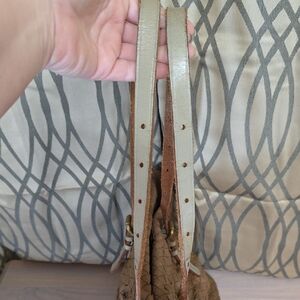 This beautiful vintage woven design with stylish cutout pattern. Features cream strap accents. Perfect for versatile use.