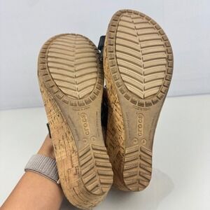 Crocs Black Wedge Sandals Cork Sole Women's Size 8 Comfort Slip On