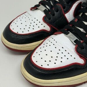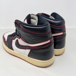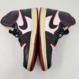 The product is a pair of Jordan 1 Retro High Bloodline sneakers from 2019 in a size 9.5. These red sneakers feature a high top silhouette, leather upper material, and belong to the Air Jordan product line. The style code is 555088-062, and they are designed for athletic use. With the iconic Jordan brand and stylish sneaker design, these shoes are a coveted choice for men looking to add a touch of sporty sophistication to their footwear collection.