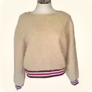 Joe Boxer Y2K Sherpa Teddy Pullover Crewneck Sweatshirt with striped elastic hem and sleeves.