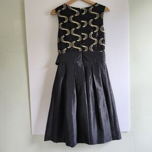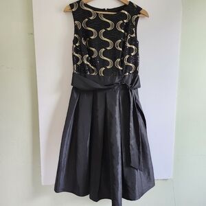 Sangria Elegant Black and Gold Sequins And Pleated Taffeta Midi Dress Size 4