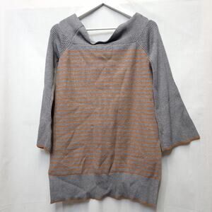 Anthropologie Elise Ribbed Tunic Size Small Gray Orange Stripe Off-the-Shoulder