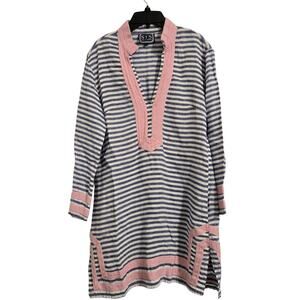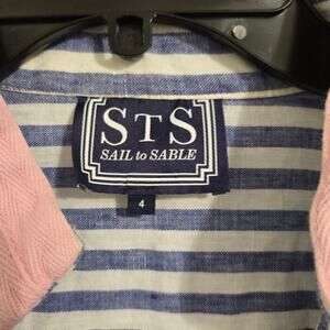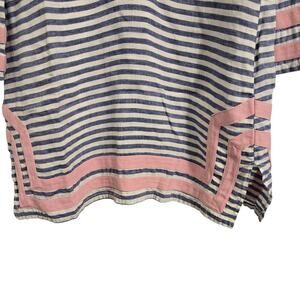 STS Sail to Sable Striped Tunic Top Navy Pink Trim Preppy 3/4 Sleeve Sz 4